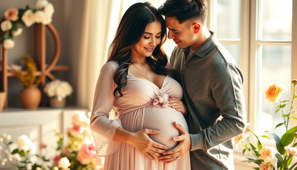 Make your maternity photoshoot special by adding artistic props and accessories. These can turn simple pictures into beautiful, personal portraits. They tell your unique pregnancy story.